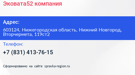 Эковата52, компания по адресу 603124, Нижегородская область, Нижний Новгород, Вторчермета, 119ст2 в дальнейшем Организация, размещена в следующих категориях: