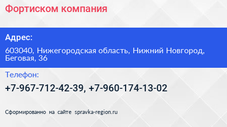 Фортиском, компания по адресу 603040, Нижегородская область, Нижний Новгород, Беговая, 36 в дальнейшем Организация, размещена в следующих категориях: