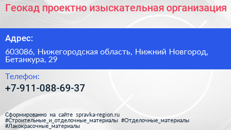 Геокад, проектно-изыскательная организация по адресу 603086, Нижегородская область, Нижний Новгород, Бетанкура, 29 в дальнейшем Организация, размещена в следующих категориях:
