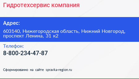 Гидротехсервис, компания по адресу 603140, Нижегородская область, Нижний Новгород, проспект Ленина, 31 к2 в дальнейшем Организация, размещена в следующих категориях: