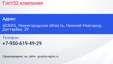 Гост52, компания по адресу 603041, Нижегородская область, Нижний Новгород, Дегтярёва, 29 в дальнейшем Организация, размещена в следующих категориях: