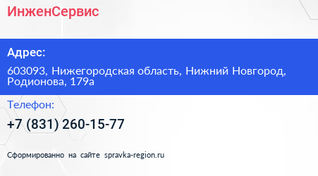 ИнженСервис по адресу 603093, Нижегородская область, Нижний Новгород, Родионова, 179а в дальнейшем Организация, размещена в следующих категориях: