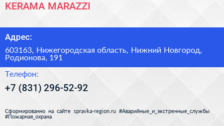 KERAMA MARAZZI по адресу 603163, Нижегородская область, Нижний Новгород, Родионова, 191 в дальнейшем Организация, размещена в следующих категориях: