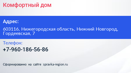 Комфортный дом по адресу 603116, Нижегородская область, Нижний Новгород, Гордеевская, 7 в дальнейшем Организация, размещена в следующих категориях:
