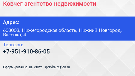 Ковчег, агентство недвижимости по адресу 603003, Нижегородская область, Нижний Новгород, Васенко, 4 в дальнейшем Организация, размещена в следующих категориях: