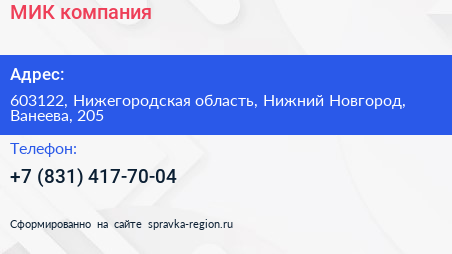 МИК, компания по адресу 603122, Нижегородская область, Нижний Новгород, Ванеева, 205 в дальнейшем Организация, размещена в следующих категориях: