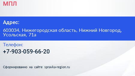 МПЛ по адресу 603034, Нижегородская область, Нижний Новгород, Усольская, 71а в дальнейшем Организация, размещена в следующих категориях: