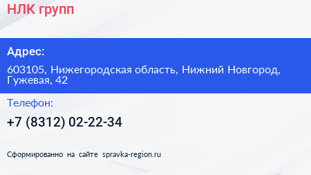 НЛК- групп по адресу 603105, Нижегородская область, Нижний Новгород, Гужевая, 42 в дальнейшем Организация, размещена в следующих категориях: