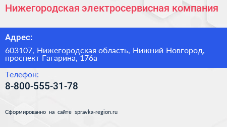 Нижегородская электросервисная компания по адресу 603107, Нижегородская область, Нижний Новгород, проспект Гагарина, 176а в дальнейшем Организация, размещена в следующих категориях: