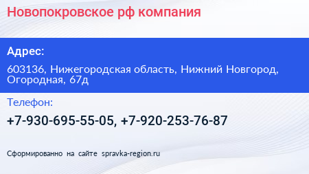 Новопокровское.рф, компания по адресу 603136, Нижегородская область, Нижний Новгород, Огородная, 67д в дальнейшем Организация, размещена в следующих категориях: