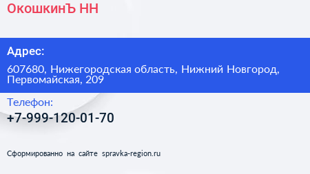 ОкошкинЪ НН по адресу 607680, Нижегородская область, Нижний Новгород, Первомайская, 209 в дальнейшем Организация, размещена в следующих категориях: