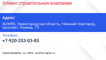 Олимп, строительная компания по адресу 603090, Нижегородская область, Нижний Новгород, проспект Ленина, 73 в дальнейшем Организация, размещена в следующих категориях: