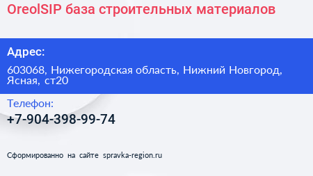 OreolSIP, база строительных материалов по адресу 603068, Нижегородская область, Нижний Новгород, Ясная, ст20 в дальнейшем Организация, размещена в следующих категориях: