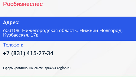 Росбизнеслес по адресу 603108, Нижегородская область, Нижний Новгород, Кузбасская, 17в в дальнейшем Организация, размещена в следующих категориях: