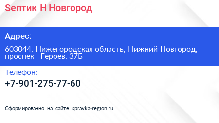 Sептик-Н-Новгород по адресу 603044, Нижегородская область, Нижний Новгород, проспект Героев, 37Б в дальнейшем Организация, размещена в следующих категориях: