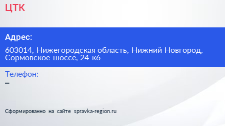 ЦТК по адресу 603014, Нижегородская область, Нижний Новгород, Сормовское шоссе, 24 к6 в дальнейшем Организация, размещена в следующих категориях: