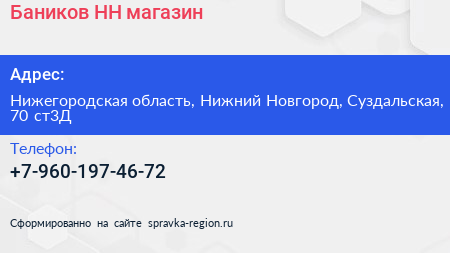 Баников НН, магазин по адресу Нижегородская область, Нижний Новгород, Суздальская, 70 ст3Д в дальнейшем Организация, размещена в следующих категориях: