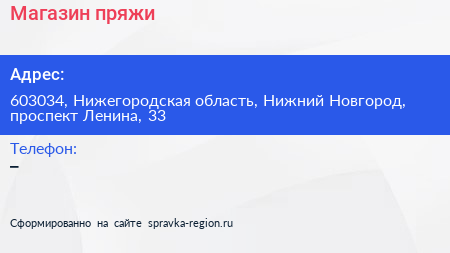 Магазин пряжи по адресу 603034, Нижегородская область, Нижний Новгород, проспект Ленина, 33 в дальнейшем Организация, размещена в следующих категориях: