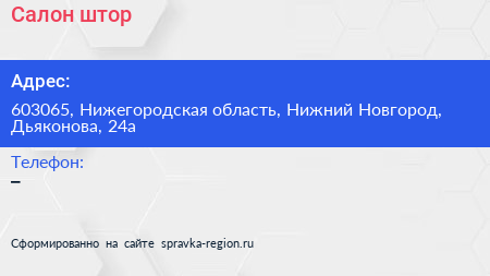 Салон штор по адресу 603065, Нижегородская область, Нижний Новгород, Дьяконова, 24а в дальнейшем Организация, размещена в следующих категориях: