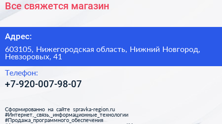 Все свяжется, магазин по адресу 603105, Нижегородская область, Нижний Новгород, Невзоровых, 41 в дальнейшем Организация, размещена в следующих категориях:
