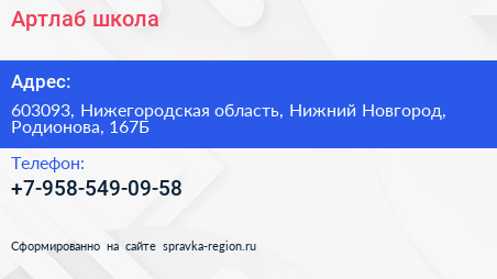 Артлаб, школа по адресу 603093, Нижегородская область, Нижний Новгород, Родионова, 167Б в дальнейшем Организация, размещена в следующих категориях: