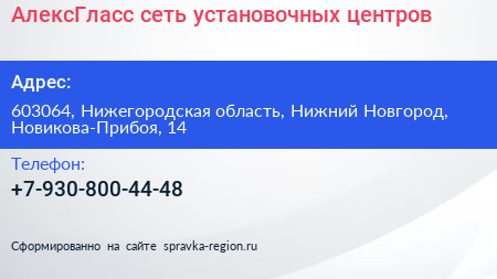 АлексГласс, сеть установочных центров по адресу 603064, Нижегородская область, Нижний Новгород, Новикова-Прибоя, 14 в дальнейшем Организация, размещена в следующих категориях: