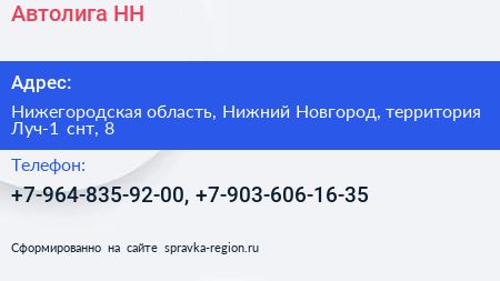 Автолига-НН по адресу Нижегородская область, Нижний Новгород, территория Луч-1 снт, 8 в дальнейшем Организация, размещена в следующих категориях: