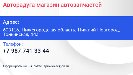 Авторадуга, магазин автозапчастей по адресу 603116, Нижегородская область, Нижний Новгород, Тонкинская, 14а в дальнейшем Организация, размещена в следующих категориях: