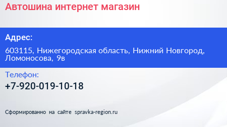 Автошина, интернет-магазин по адресу 603115, Нижегородская область, Нижний Новгород, Ломоносова, 9в в дальнейшем Организация, размещена в следующих категориях: