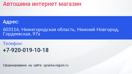 Автошина, интернет-магазин по адресу 603116, Нижегородская область, Нижний Новгород, Гордеевская, 97а в дальнейшем Организация, размещена в следующих категориях: