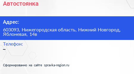 Автостоянка по адресу 603093, Нижегородская область, Нижний Новгород, Яблоневая, 14в в дальнейшем Организация, размещена в следующих категориях: