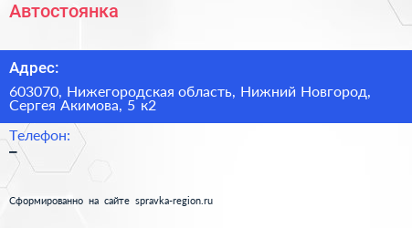Автостоянка по адресу 603070, Нижегородская область, Нижний Новгород, Сергея Акимова, 5 к2 в дальнейшем Организация, размещена в следующих категориях: