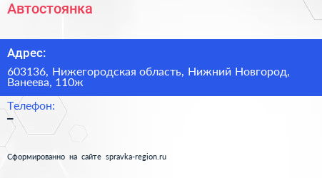 Автостоянка по адресу 603136, Нижегородская область, Нижний Новгород, Ванеева, 110ж в дальнейшем Организация, размещена в следующих категориях: