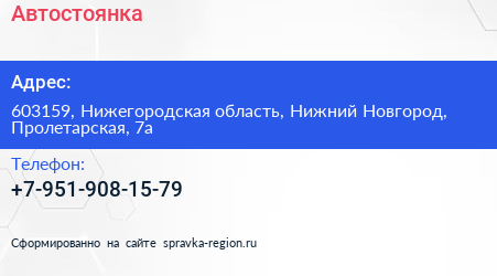 Автостоянка по адресу 603159, Нижегородская область, Нижний Новгород, Пролетарская, 7а в дальнейшем Организация, размещена в следующих категориях: