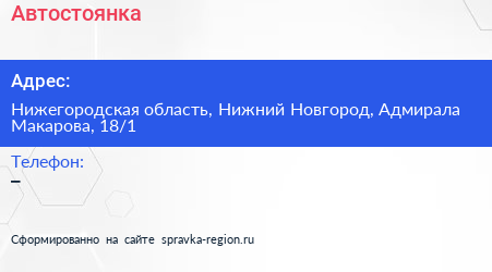 Автостоянка по адресу Нижегородская область, Нижний Новгород, Адмирала Макарова, 18/1 в дальнейшем Организация, размещена в следующих категориях: