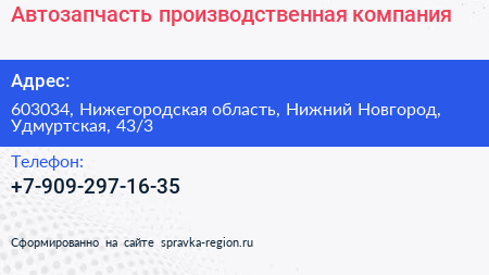 Автозапчасть, производственная компания по адресу 603034, Нижегородская область, Нижний Новгород, Удмуртская, 43/3 в дальнейшем Организация, размещена в следующих категориях: