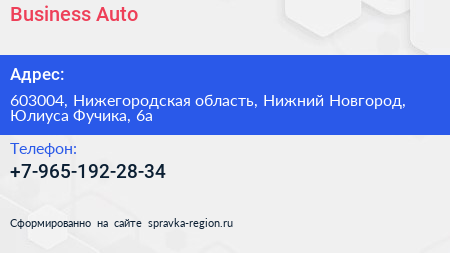 Business Auto по адресу 603004, Нижегородская область, Нижний Новгород, Юлиуса Фучика, 6а в дальнейшем Организация, размещена в следующих категориях: