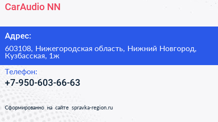 CarAudio NN по адресу 603108, Нижегородская область, Нижний Новгород, Кузбасская, 1ж в дальнейшем Организация, размещена в следующих категориях: