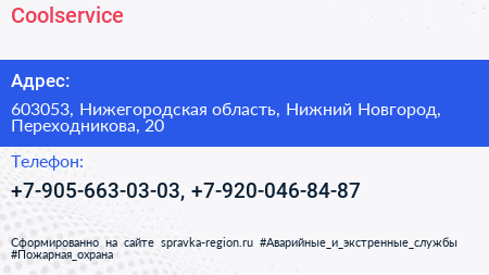 Coolservice по адресу 603053, Нижегородская область, Нижний Новгород, Переходникова, 20 в дальнейшем Организация, размещена в следующих категориях: