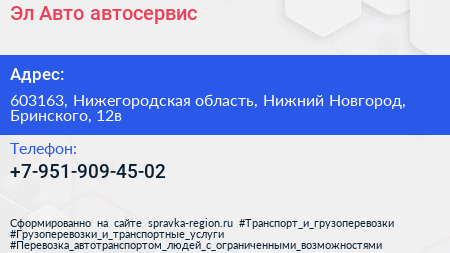 Эл Авто, автосервис по адресу 603163, Нижегородская область, Нижний Новгород, Бринского, 12в в дальнейшем Организация, размещена в следующих категориях: