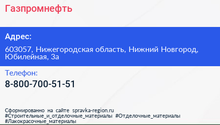 Газпромнефть по адресу 603057, Нижегородская область, Нижний Новгород, Юбилейная, 3а в дальнейшем Организация, размещена в следующих категориях: