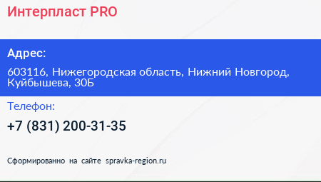 Интерпласт. PRO по адресу 603116, Нижегородская область, Нижний Новгород, Куйбышева, 30Б в дальнейшем Организация, размещена в следующих категориях: