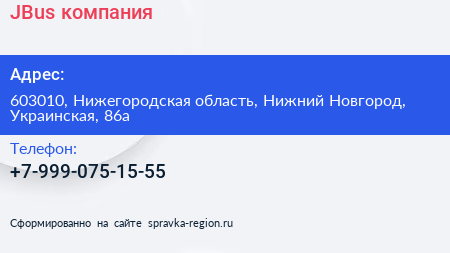 JBus, компания по адресу 603010, Нижегородская область, Нижний Новгород, Украинская, 86а в дальнейшем Организация, размещена в следующих категориях: