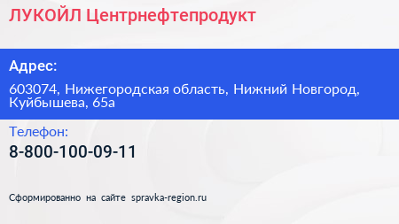 ЛУКОЙЛ-Центрнефтепродукт по адресу 603074, Нижегородская область, Нижний Новгород, Куйбышева, 65а в дальнейшем Организация, размещена в следующих категориях: