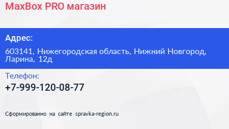 MaxBox PRO, магазин по адресу 603141, Нижегородская область, Нижний Новгород, Ларина, 12д в дальнейшем Организация, размещена в следующих категориях:
