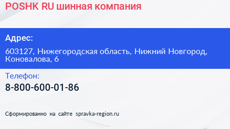 POSHK.RU, шинная компания по адресу 603127, Нижегородская область, Нижний Новгород, Коновалова, 6 в дальнейшем Организация, размещена в следующих категориях: