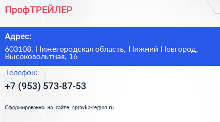 ПрофТРЕЙЛЕР по адресу 603108, Нижегородская область, Нижний Новгород, Высоковольтная, 16 в дальнейшем Организация, размещена в следующих категориях: