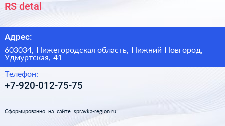 RS detal по адресу 603034, Нижегородская область, Нижний Новгород, Удмуртская, 41 в дальнейшем Организация, размещена в следующих категориях: