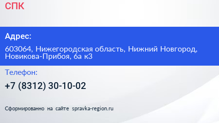 СПК по адресу 603064, Нижегородская область, Нижний Новгород, Новикова-Прибоя, 6а к3 в дальнейшем Организация, размещена в следующих категориях: