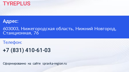 TYREPLUS по адресу 603003, Нижегородская область, Нижний Новгород, Станционная, 76 в дальнейшем Организация, размещена в следующих категориях: